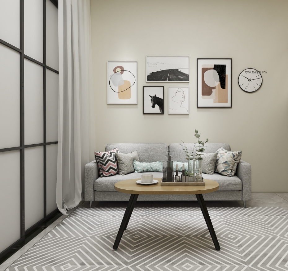 北欧饰品的选择以简洁流畅的造型、冷酷的材质、色彩艳丽的装饰品为主。抽象的装饰画,几何造型。艺术画是北欧人最爱的室内装饰装饰元素。挂在墙上,也许是集成式的摆放,创造一种画廊的感觉,或者只是摆放在家具或地板上。小绿植、文化砖、网格架等有趣的小墙饰,也是北欧风格里面的特色元素之一,能增添空间的清新与文艺气息。