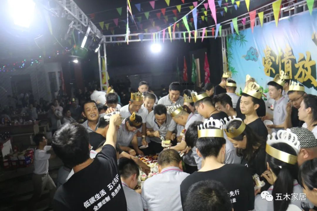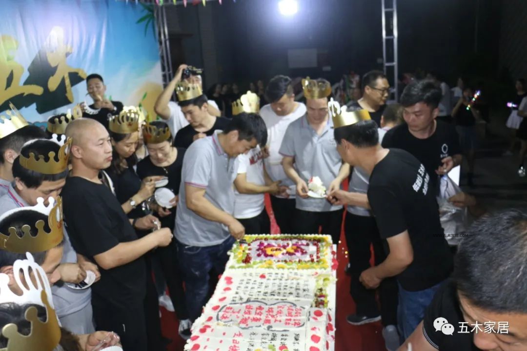 夜幕升起,公司为本月的寿星订了超大的生日蛋糕,几十位寿星一同登上舞台在五百多家人的见证下,同共过了一个热闹非凡的生日。