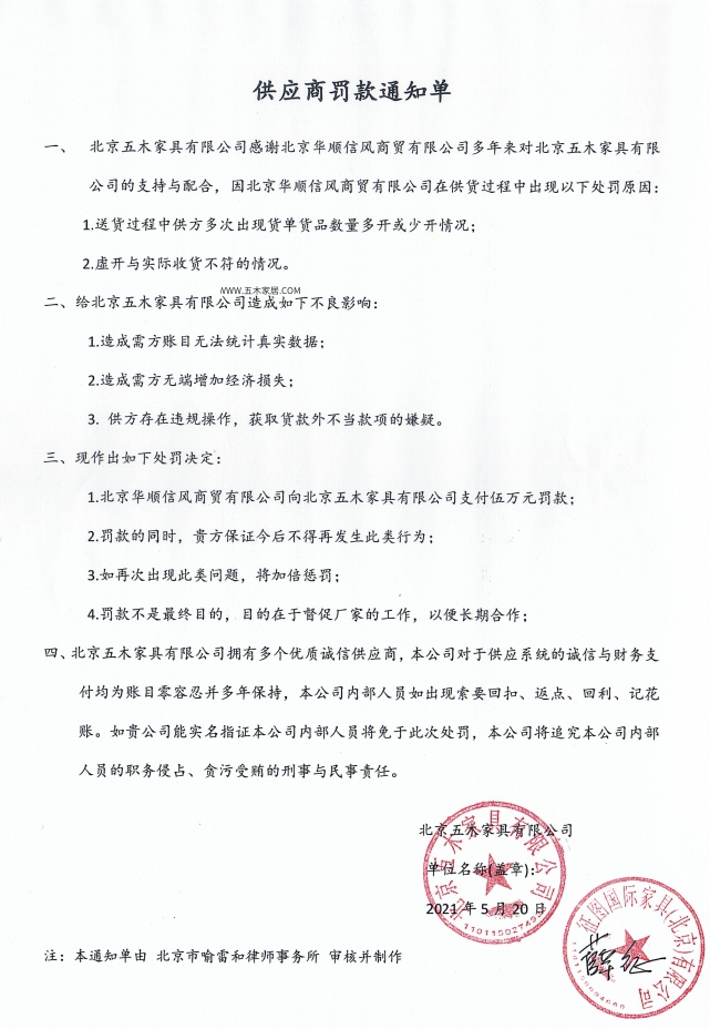 关于《供应商供应不实》罚款公告