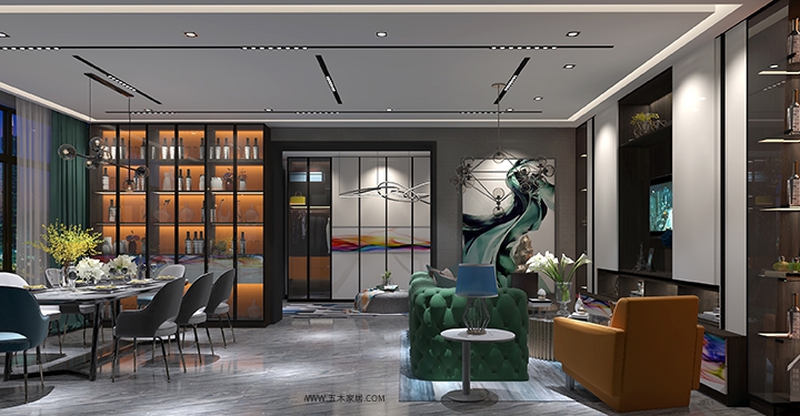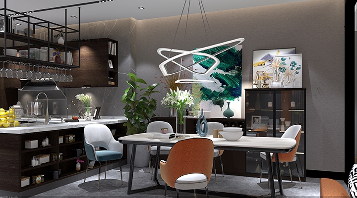 对于极简风格来说,颜色越少,元素越单一,设计难度就越高,从上图可以看到,客厅多用深色为主色调,在空间布局的处理上要更加灵活些,一切以简洁与实用为主