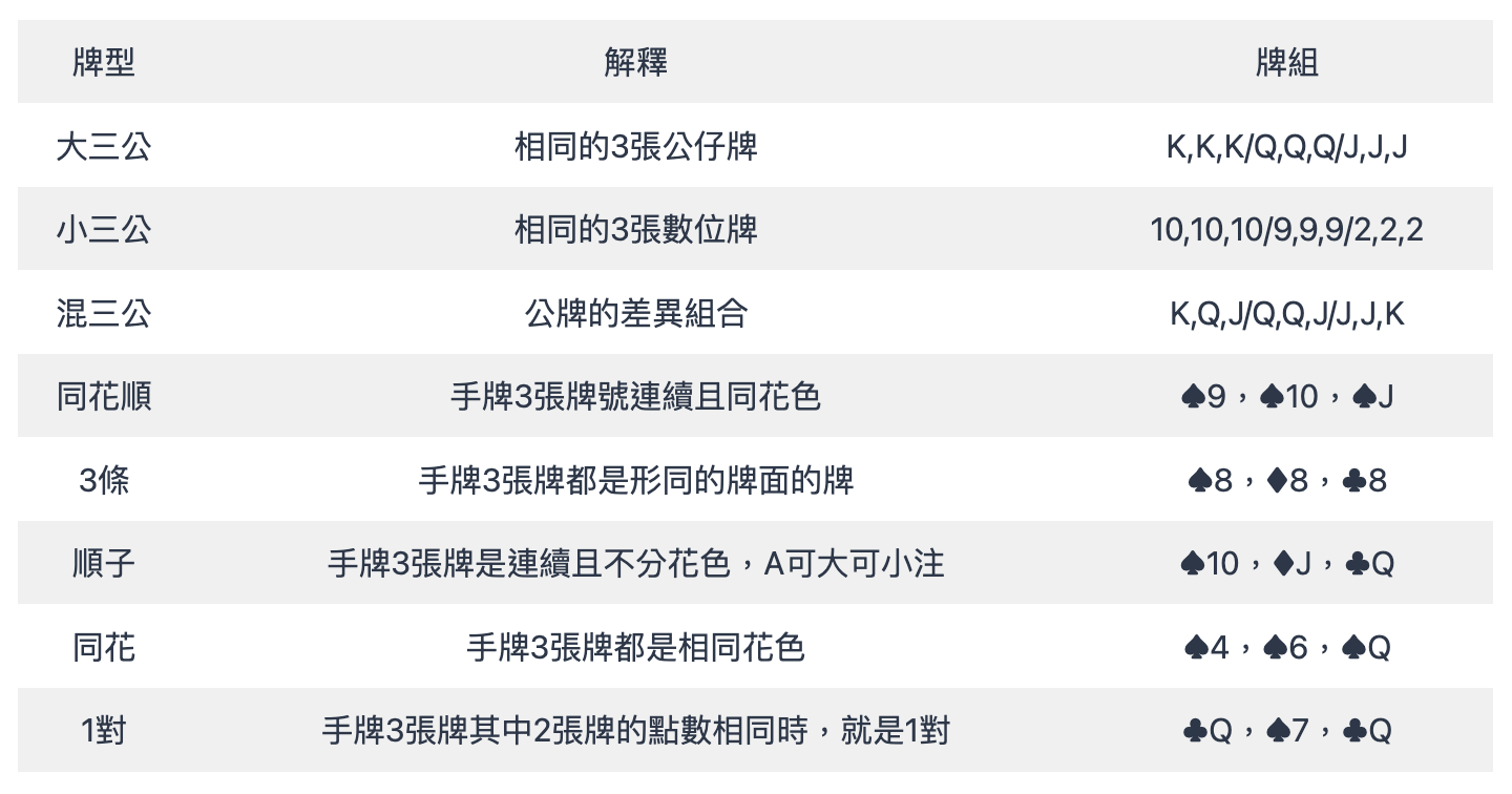 公牌:公牌指的是J、Q、K這三張牌。在